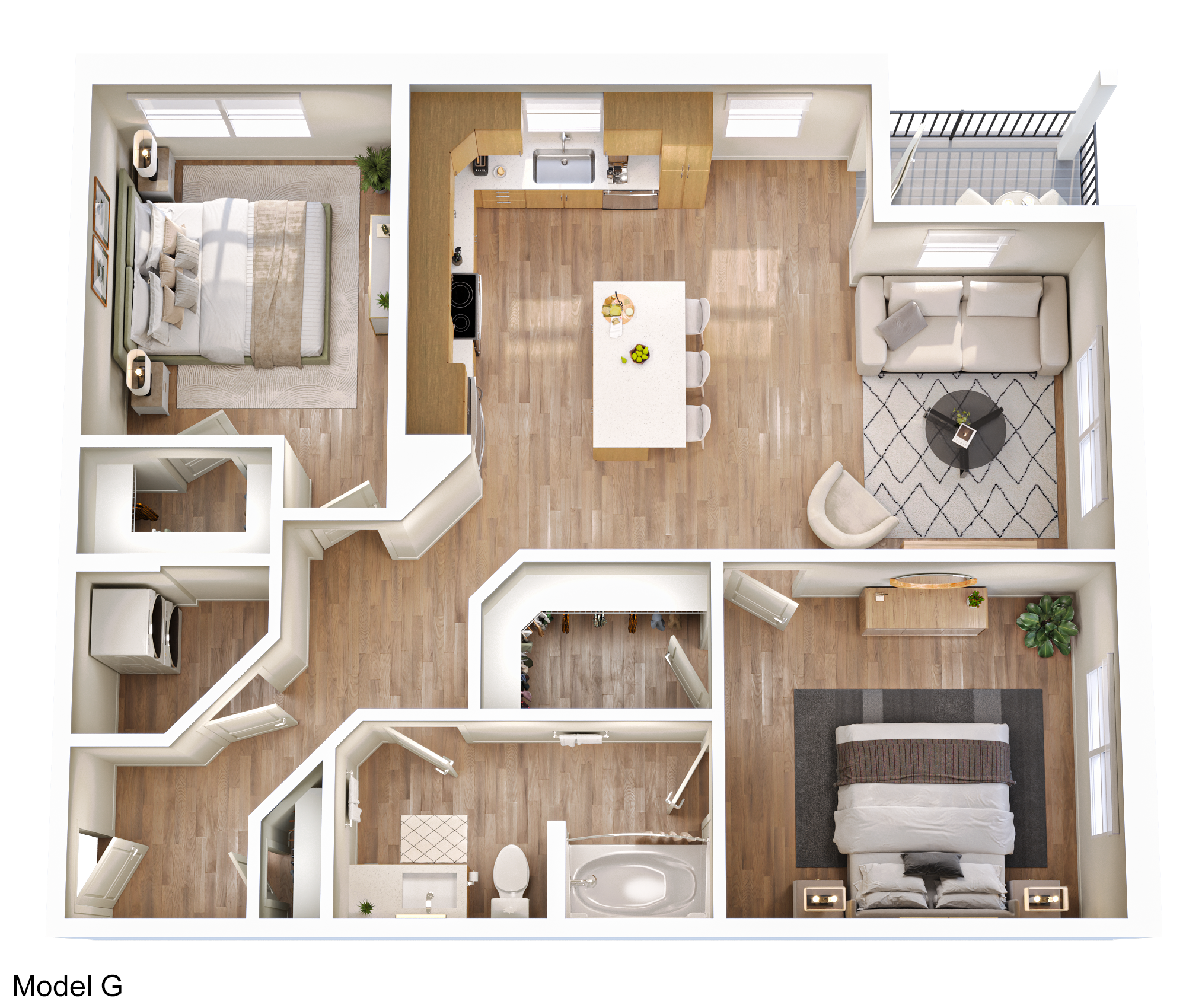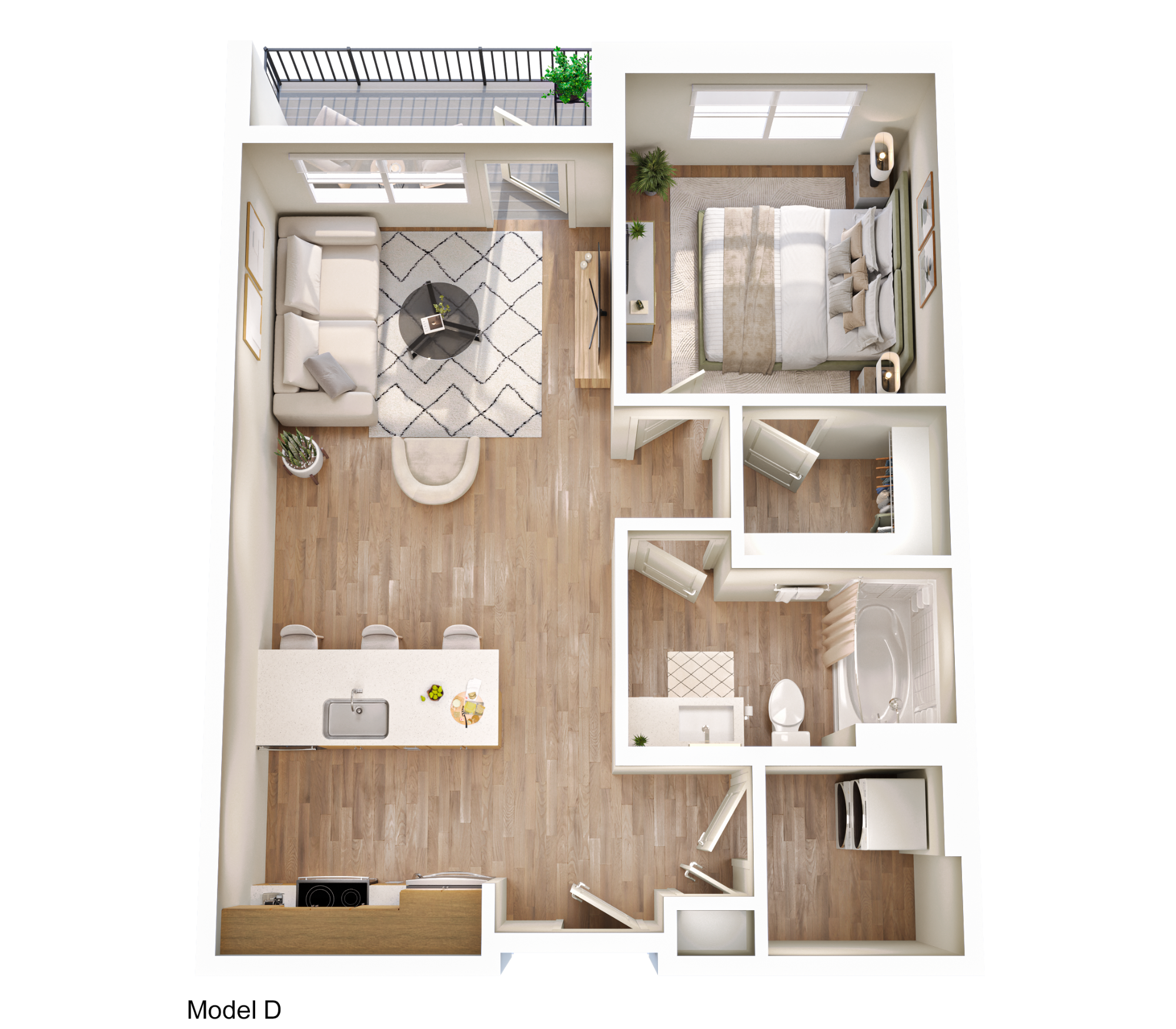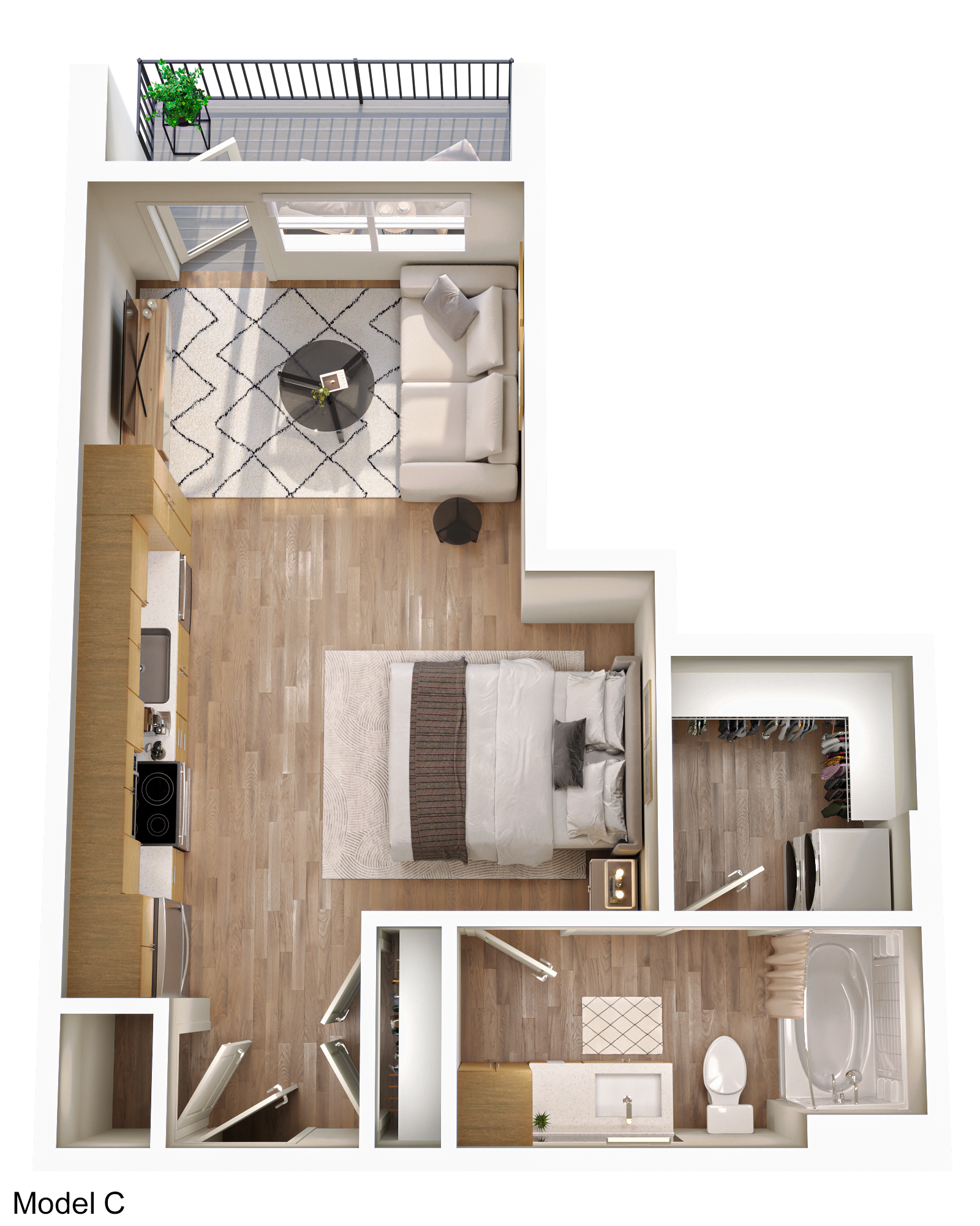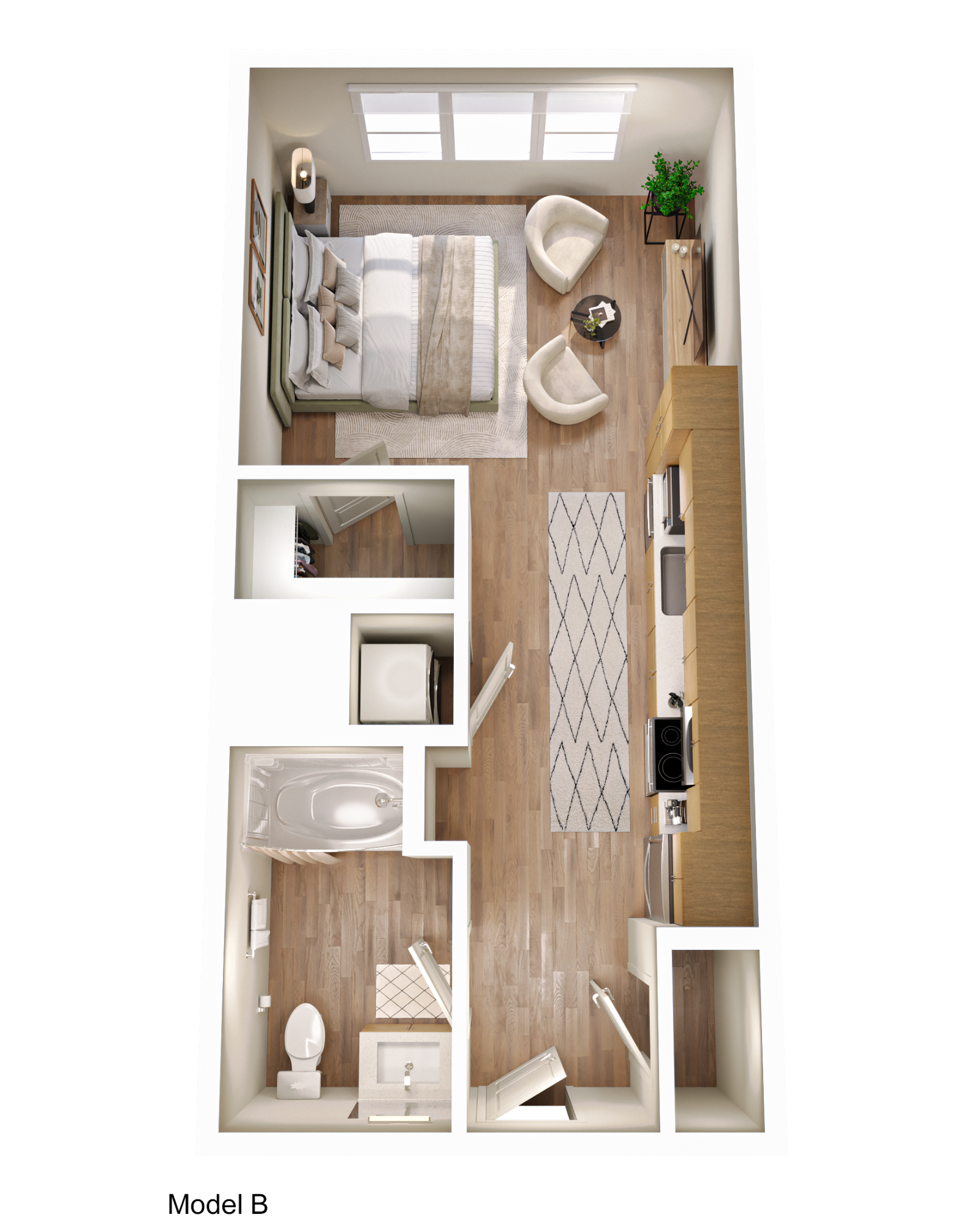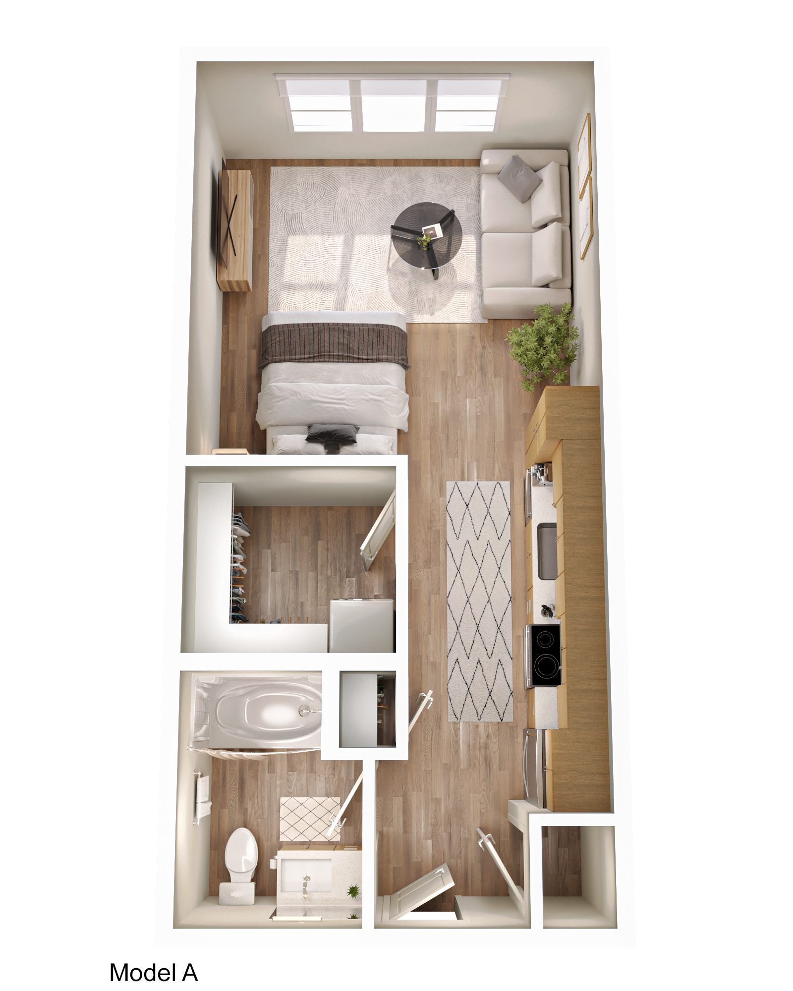 Find your fit at Trail House. From efficient studios to spacious two-bedroom homes, each floor plan is designed with sleek, modern interiors, and exceptional features.