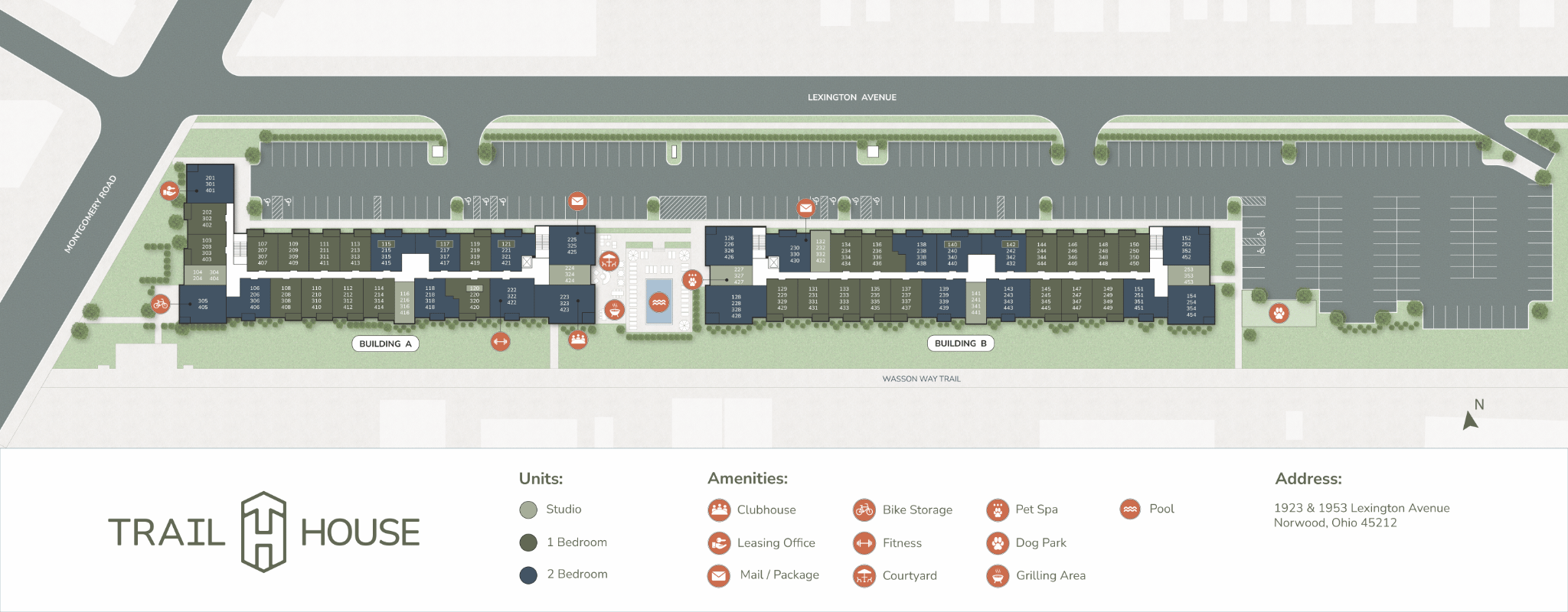 Bringing brand-new studio, one-, and two-bedroom apartments to Norwood along Wasson Way.